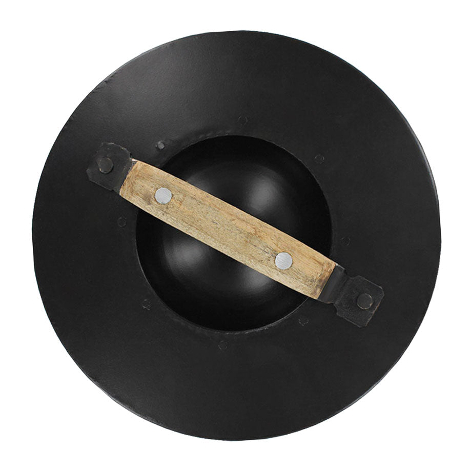The forged iron handle is securely riveted between two sturdy wooden slabs, ensuring a comfortable and controlled grip during combat. Whether used in historical reenactments, training, or as a collectible display piece, this buckler delivers authentic medieval craftsmanship and practical defensive performance.