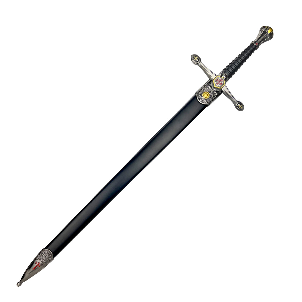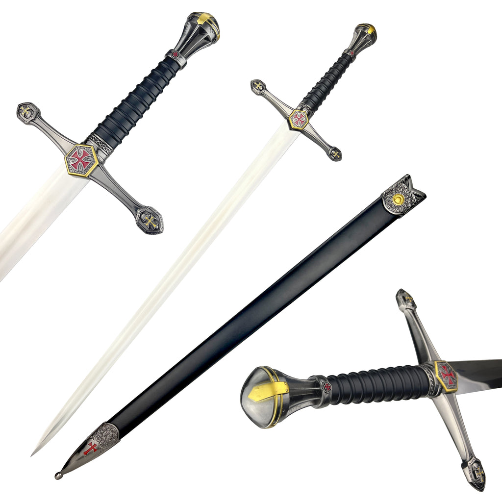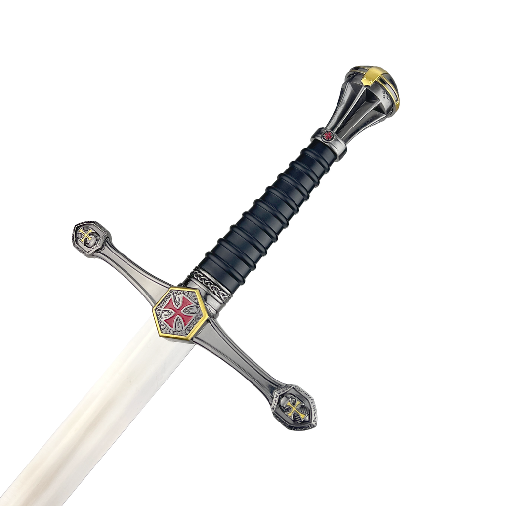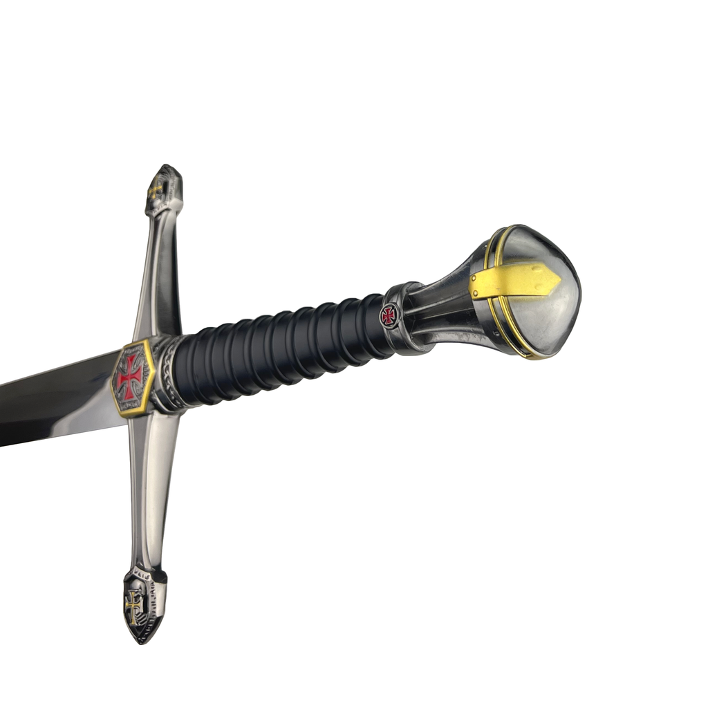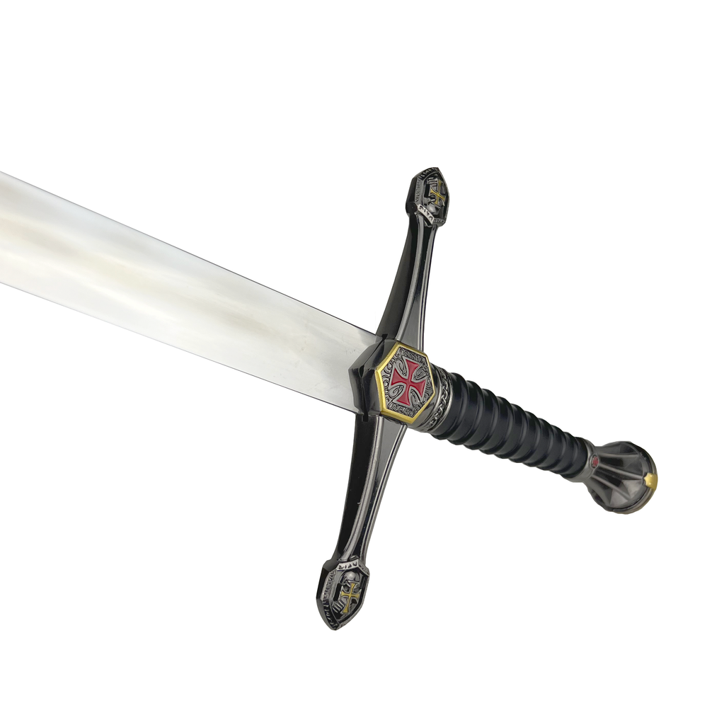 Cross Guard & Pommel: Ornate metal detailing with Crusader emblems for a distinguished medieval look.