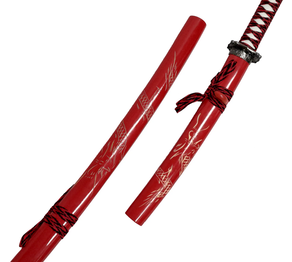 Each sword comes with a matching wooden scabbard featuring an intricately carved white dragon—symbolizing strength and protection. -